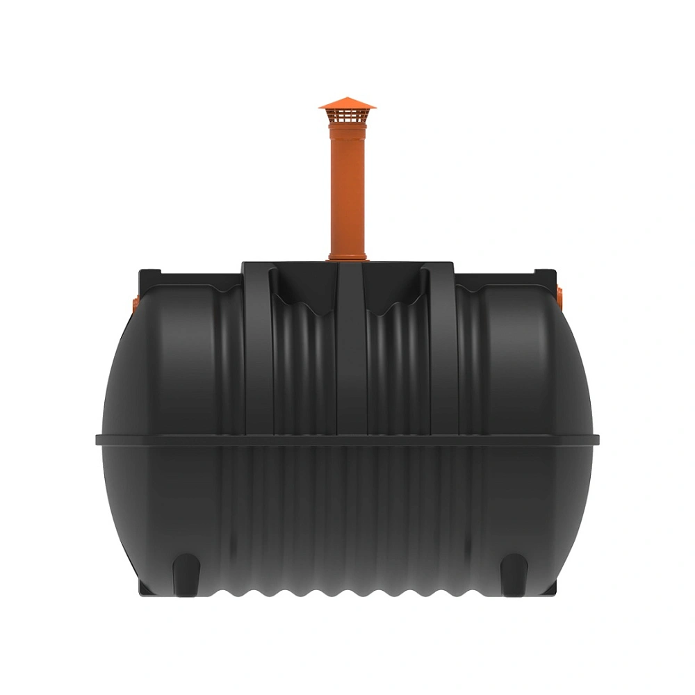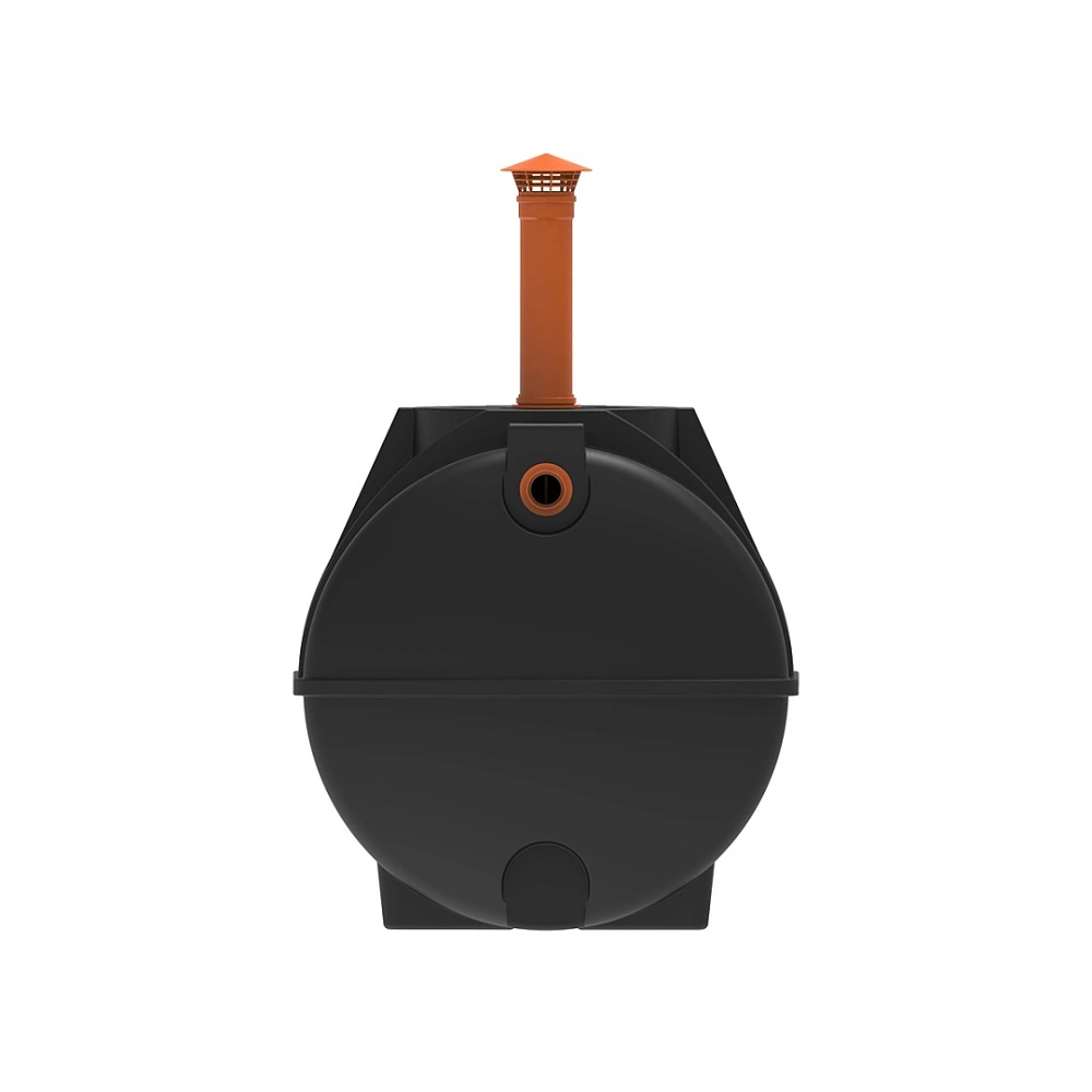 Там, где доступ человека не требуется (емкость используется как накопитель хозяйственно-бытовых стоков, технической и дождевой воды, питьевой поды и т.д.), подойдёт вариант с шахтой 160 мм. Высота шахты составляет 1000 мм. Шахту можно обрезать или нарастить в зависимости от глубины подводящей трубы.