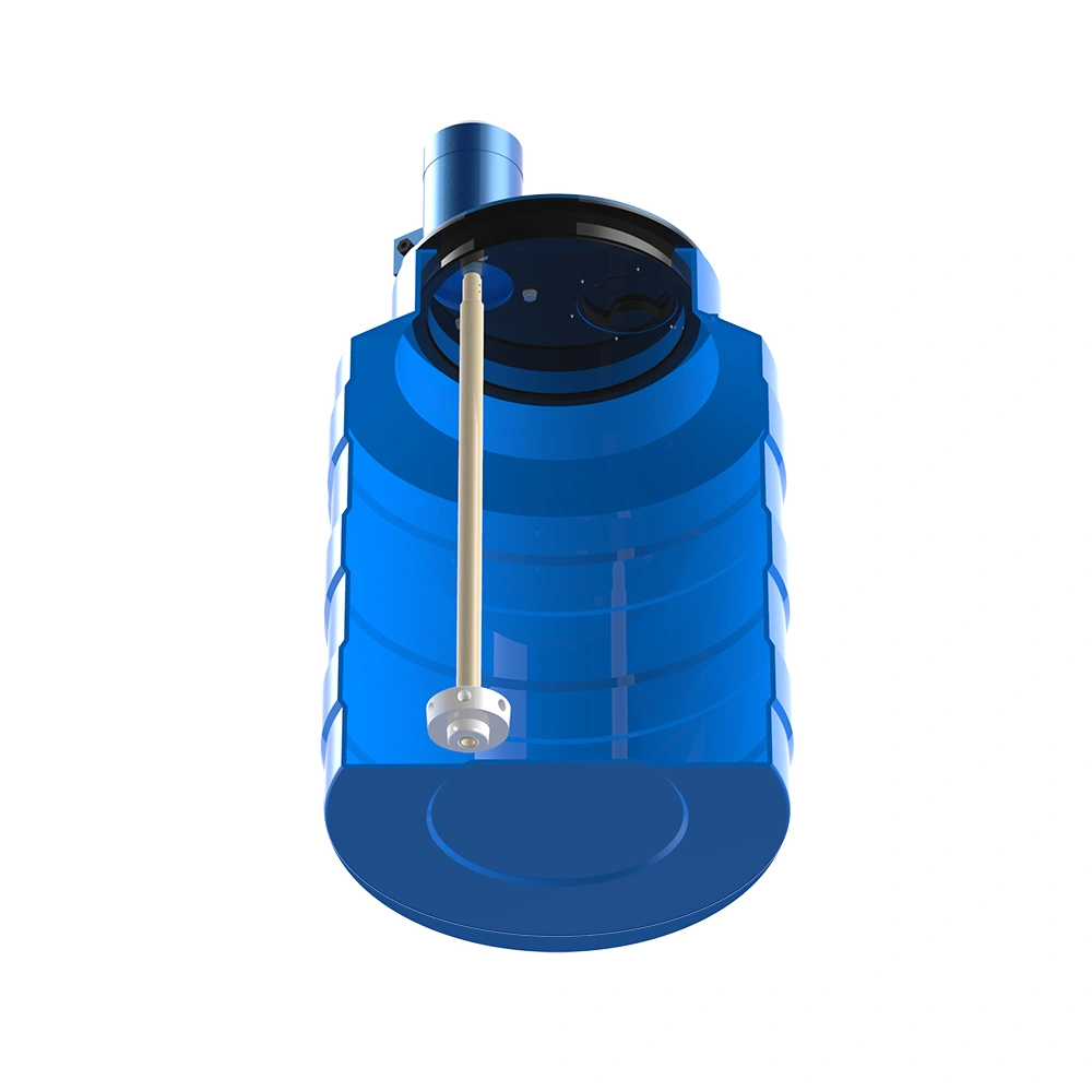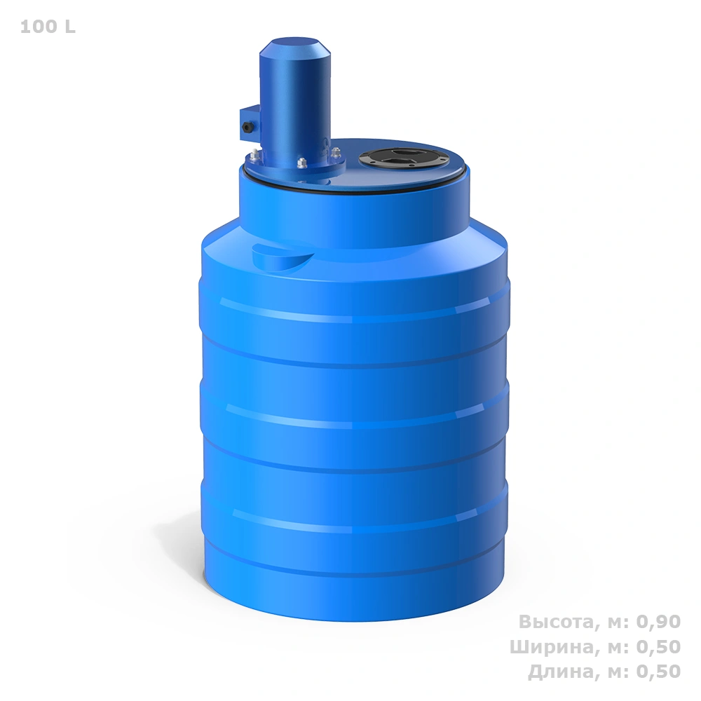 Ёмкость изготовлена из пищевого полиэтилена, устойчива к механическим нагрузкам и химически нейтральна. Крышка, вал и рабочее колесо выполнены из прочного композитного материала, что гарантирует надёжность и стойкость к агрессивным средам.