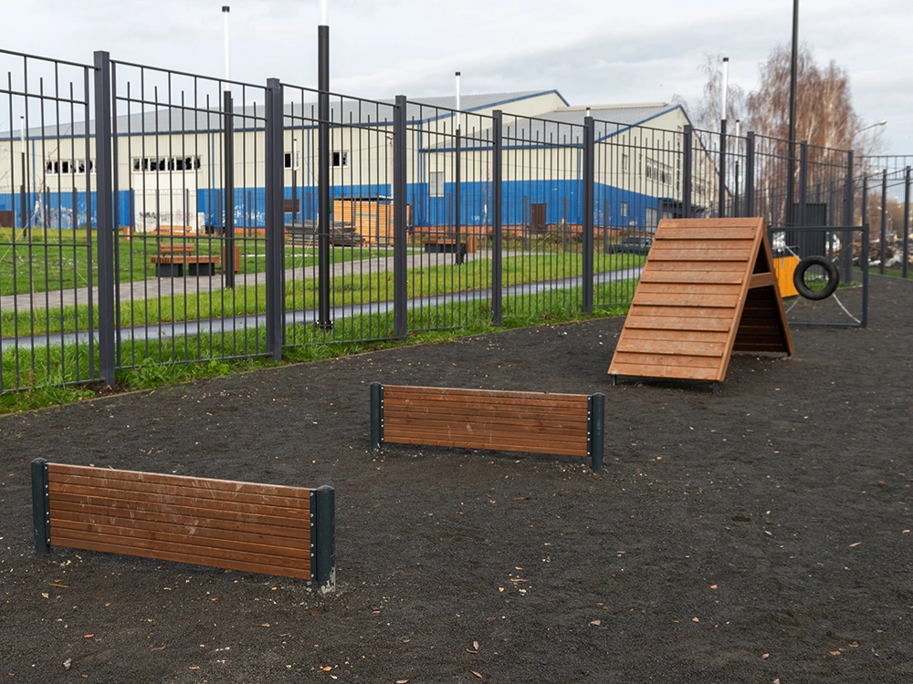 Искусственное препятствие для собак предназначен для дрессировки и оценки навыков собаки в преодолении препятствий методом опорных прыжков. Состоит из двух стоек и щита.
