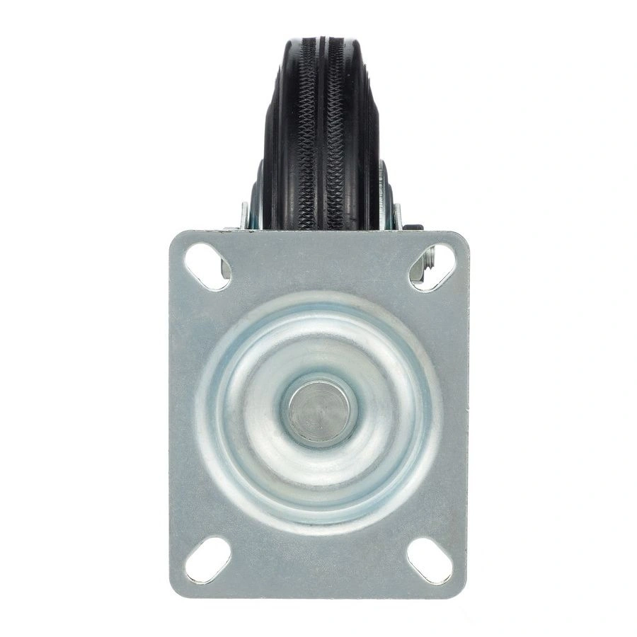 Колесо поворотное 4001-125, диаметр 125мм., грузоподъемность 100кг. Колеса из черной литой резины, центр из двух гальванизированных дисков из штампованной стали. Роликовый (игольчатый) подшипник расположен в углублении, выдавленном под прессом, и содержит цилиндрические ролики подшипника. Кронштейн изготовлен прессованием из листовой стали. В поворотном узле двухрядный шарикоподшипник. Возможно применение на относительно грубых полах складов, заводов, производственных и строительных площадках. Данные колеса можно использовать на неровных поверхностях, во влажной окружающей среде и использовании вне помещения, не рекомендуется применять в среде с органическими растворителями, хлорированными веществами, гидрокарбонатами и минеральными маслами. Температура эксплуатации от -20 до +70С.