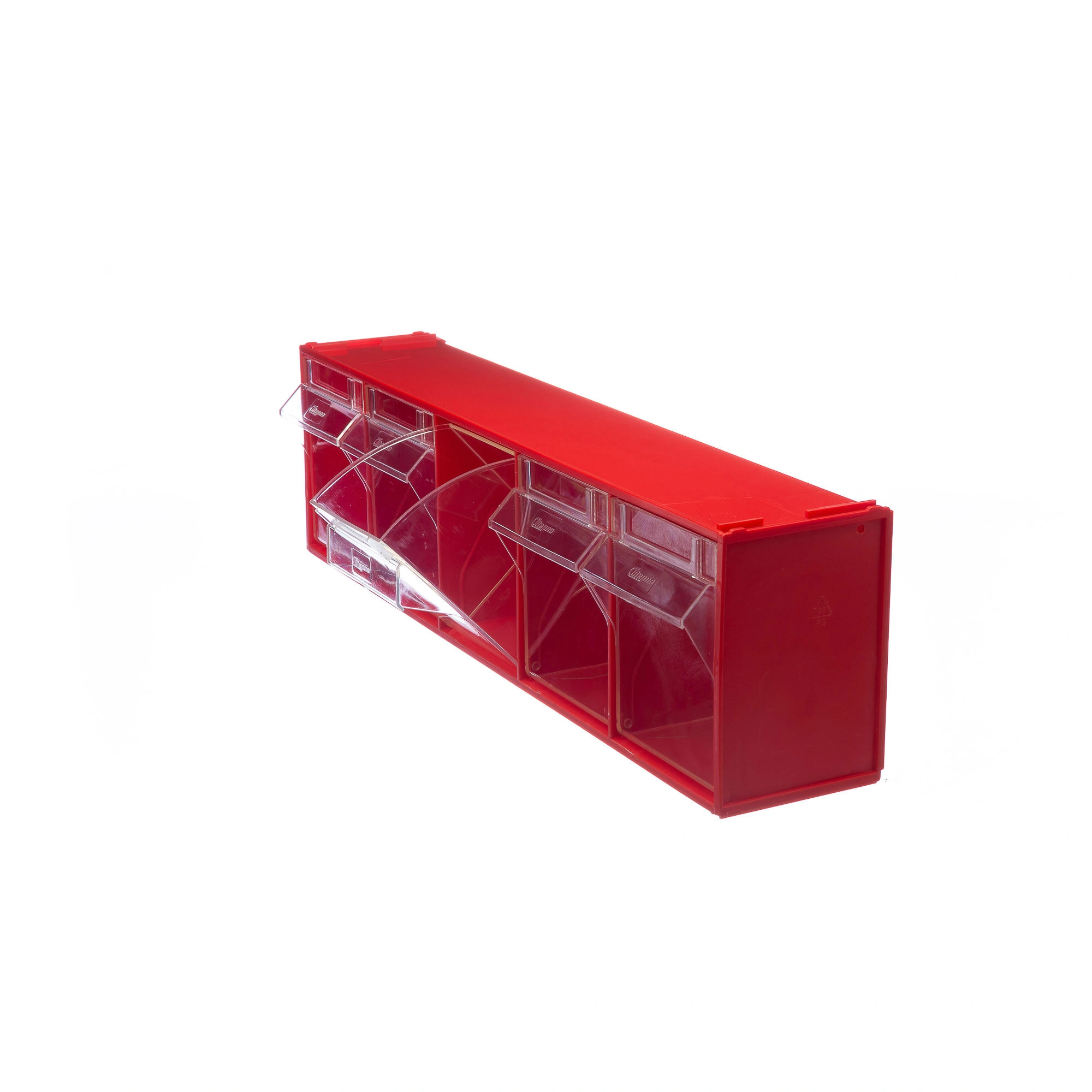 Короб откидной СТЕЛЛА-103 (600х140х168мм.) 5 ячеек, красный, прозрачный, служит для хранения мелкоштучных предметов. Данная система хранения не подвержена случайному опрокидыванию. Откидные ячейки обеспечивают быстрый доступ к необходимым предметам. В случае необходимости полного высыпания или наполнения короб легко извлекается. Полезный внутренний размер каждой ячейки 108х98х107мм. Специальный пластик, из которого выполнен короб, выдерживает значительные нагрузки и обладает оптимальной эластичностью. На основе данных коробов можно сформировать многоярусную систему хранения, в том числе, и с коробами других размеров, таких как СТЕЛЛА-101,102,104,F-600-9, F-600-6 и F-600-4. Преимущества: Обзорность содержимого сквозь прозрачные внутренние ячейки. Стандартный цвет наружной кассеты откидного короба-красный, внутренней-прозрачный. На внутреннем коробе есть специальный отсек для информационных съемных бирок. Легкое и быстрое извлечение внутреннего короба для опустошения или наполнения. Температура эксплуатации от -10 до +70С.