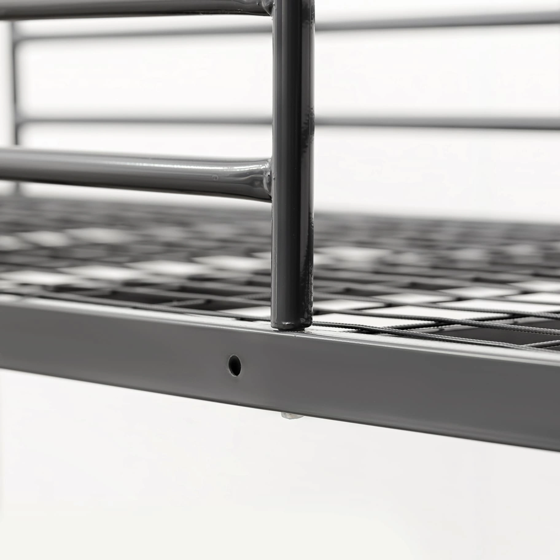 Спинки кровати выполнены в виде двух вертикальных колонок из круглых труб, диаметром Ø51 мм. и объединяющих их, трёх стяжек горизонтальных из труб круглого сечения Ø20 мм. Колонки объединены сваркой. Спинки в сборе имеют "П" - образную форму. Ложе (Рама) - прямоугольной формы, состоит из двух несущих, горизонтальных прямоугольных труб 40х20 мм. и соединяющих их, приваренных - пяти усилителей поперечных из квадратных труб сечением 25х25 мм. Сверху, к несущим трубам и усилителям поперечным приварена сетка сварная металлическая 700х1900 мм. с ячейкой 50*100 мм. и диаметром проволоки Ø3 мм. Ложе и спинки жестко соединяются между собой при сборке, с помощью клиновых зацеплений (Клин+Петля) расположенных на раме и спинках, и изготовленных методом холодной штамповки из листовой стали. Клиновые соединения фиксируется винтами М6х16, шайбами 6 и гайками М6. Открытые крепёжные отв. Ø8 мм., торцы труб спинок и лестницы закрыты пластиковыми заглушками, предохраняющими покрытие пола от повреждений и в декоративных целях. Кровать имеет защитно-декоративное покрытие, стойкое к загрязнению и механическим повреждениям, выполненное порошковыми эпокси-полиэфирными красками в электростатическом поле. Покрытие обладает длительным сроком эксплуатации и является экологически чистым, соответствует ГОСТ 9.410-88. Цвет покрытия - по шкале RAL. Кровать поставляется в защитной упаковке, в разобранном виде. Соответствует нормативным требованиям и ГОСТ 19917-2014.