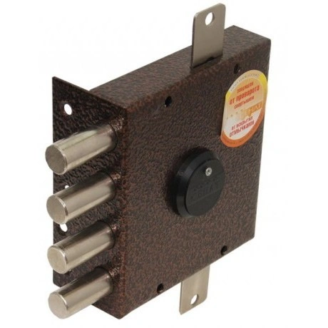 Дополнительная комплектация включает плоскую или коробчатую запорную планку, установку каленой вращающейся шайбы на крышке замка, дополнительно предохраняющей от высверливания стойки ригеля и вращающиеся стержни ригеля.