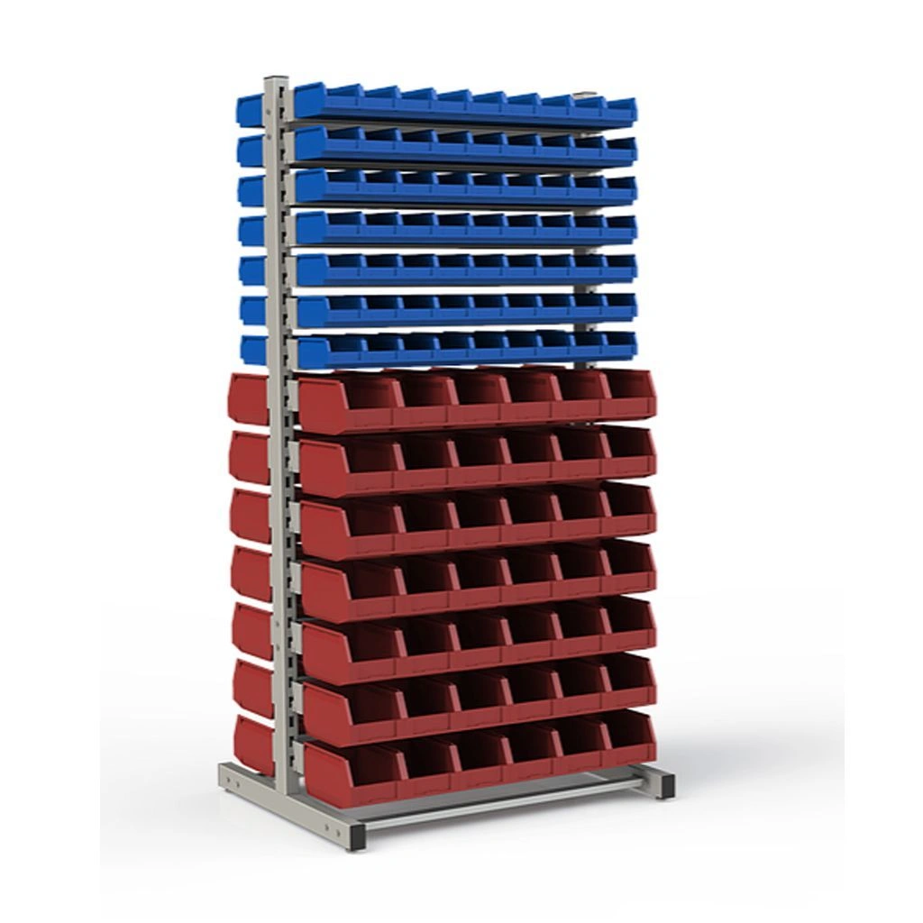 Стеллаж разработан специально для систематизации, хранения различных комплектующих, деталей, запчастей, крепежных и строительных материалов: болты, гайки, сверла, подшипники, метизы, фитинги, сантехника, зажимы, заклепки и т.д.