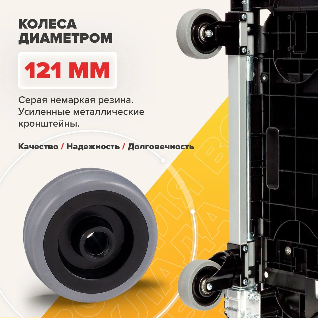 Платформенная складная тележка FF-S - это удобное приспособление для перевозки упакованных или штучных грузов. Тележка имеет складную конструкцию, поэтому удобна в хранении. Разложить конструкцию можно очень быстро и без лишних усилий. Размер платформы 409х681мм, максимальная высота ручки 956мм., диаметр колес 121мм. При компактных габаритах на тележке можно перевозить грузы весом до 137кг. Складные тележки идеально подходят для транспортировки выставочного оборудования, обслуживания маленьких складов и перевозки грузов в домашних условиях или во время путешествий. За счет узкого профиля и компактных размеров технику легко разместить на полке в самолете или багажнике машины.