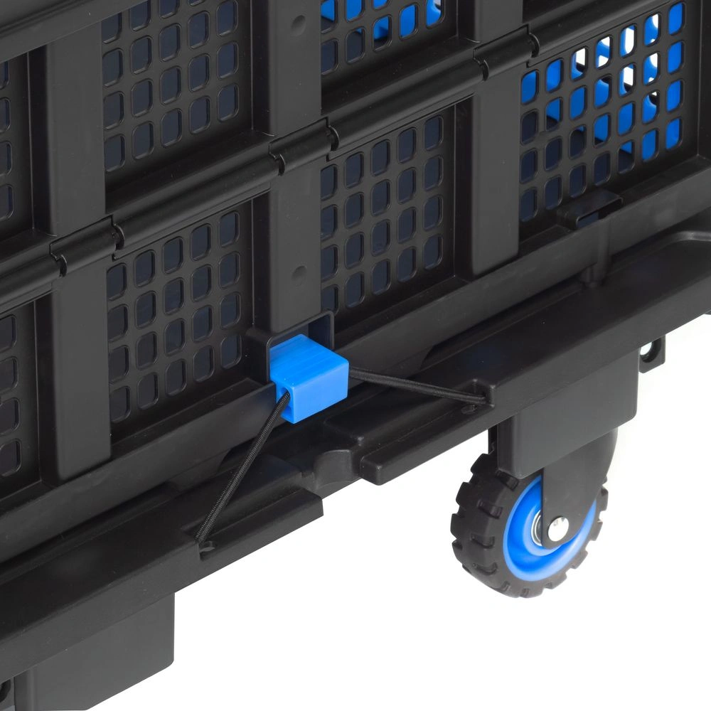 Для более комфортного использования тележки на ней можно разместить пластиковый складной ящик Стелла-техник МТ4. Во избежание его падения, ящик оснащен креплениями, которые фиксируются в специальных пазах (углублениях) на платформе. Так же по бокам платформы (на резинках), расположены дополнительные фиксаторы, удерживающие ящик от падения. Тележка поставляется в собранном виде, в коробке размером 650х85х46 см, с паспортом и инструкцией по сборке.