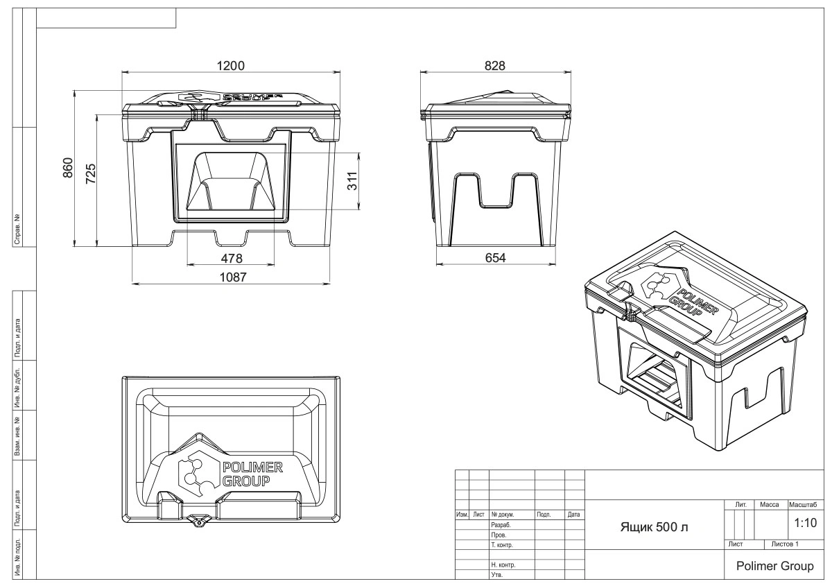 Объем контейнера для песка 500 л. Предназначен для хранения песка, применяемого для тушения пожаров на заправочных станциях. Изготовлен из полиэтилена методом ротоформования, что придает особую прочность.